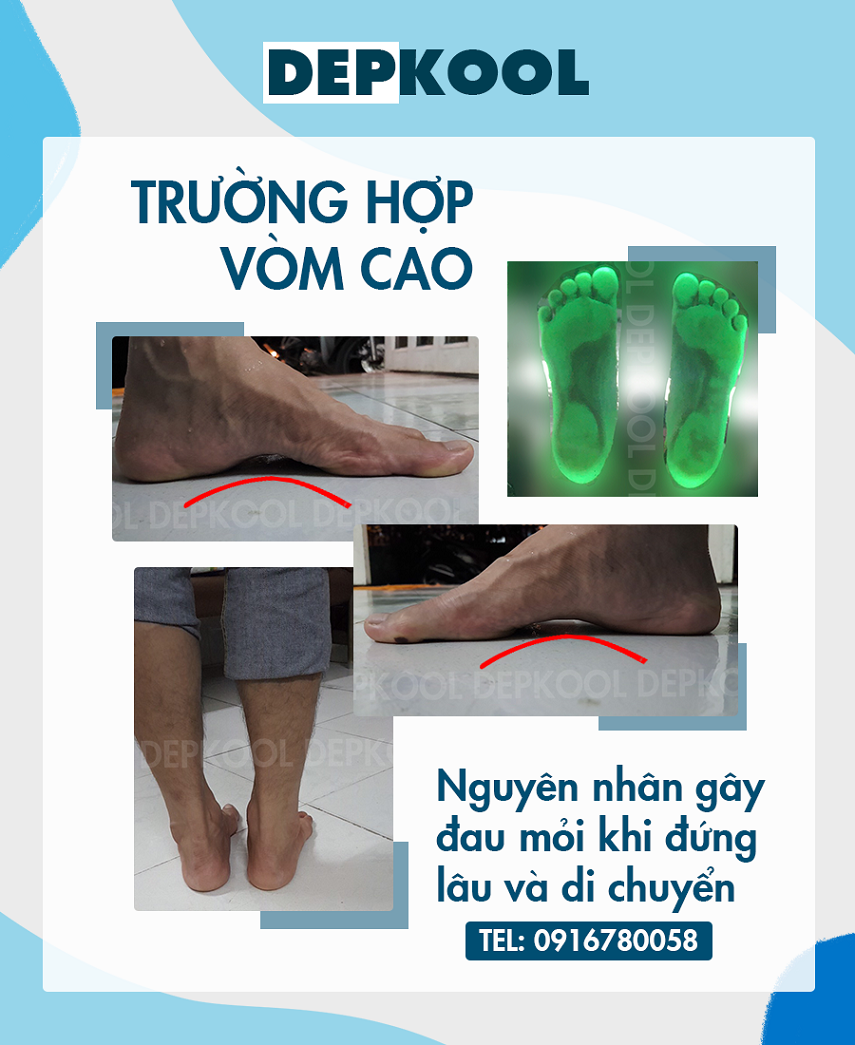 Bạn có biết ngoài Bàn Chân Bẹt, chúng ta có BÀN CHÂN LÕM CAO hay gọi là VÒM CAO (gan bàn chân quá cao so với bình thường) cũng là nguyên nhân gây nên những triệu chứng mỏi và đau chân, gối, lưng khi đi hay đứng lâu?