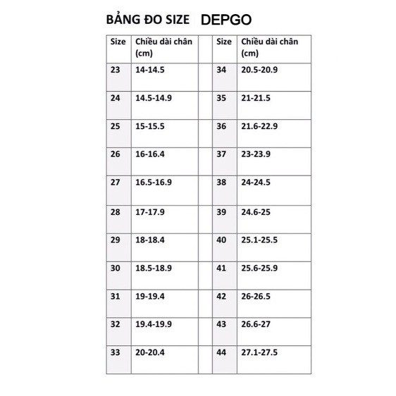 4. Size: dài chân 12-21cm (trẻ từ 1,5 tuổi đến 8 tuổi)